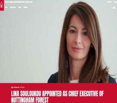 官方:前罗马CEO莉娜苏卢库出任诺丁汉森林的CEO