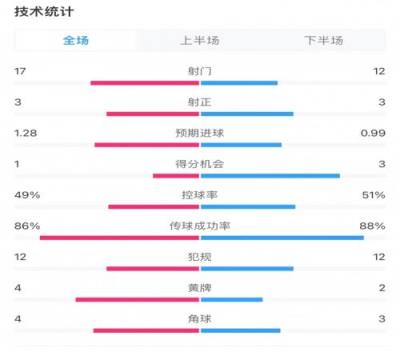 切尔西11阿森纳全场数据:射门1712,射正33,得分机会13