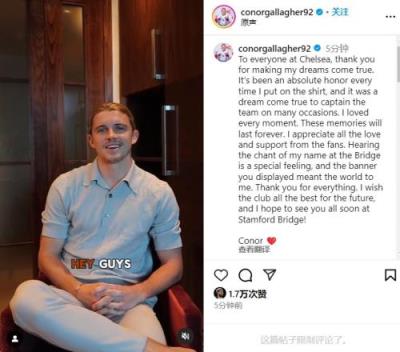 体育资讯8月21日报道宣 官方消息,切尔西中场加拉格尔转会加盟马竞。在离队之后,加拉格尔更新社媒,告别了切尔西。