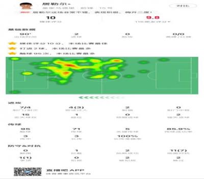 居勒尔全场数据:7次射门进2球,创造3次得分机会,获评满分10分