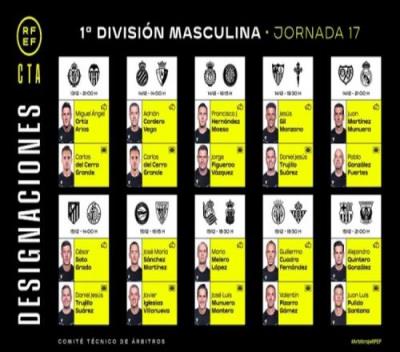西甲第17轮裁判安排:穆努埃拉执法皇马,冈萨雷斯主裁巴萨