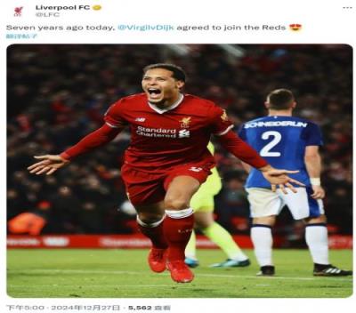 体育资讯12月27日报道宣称 7年前的今天,利物浦官方宣布从南安普顿签下范迪克。