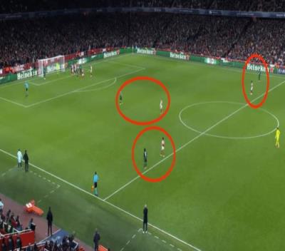 在阿森纳获得角球时,摩纳哥直接安排三名球员站到中场作为反击点。而为了防备摩纳哥的反击威胁,阿森纳不得不也抽出人员到中场进行盯防。如此一来,阿森纳禁区的人员不足,便无法很好地展开此前的各种战术。