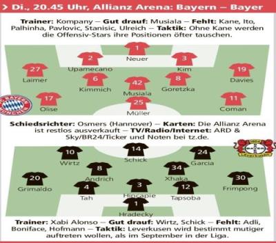 体育资讯12月3日报道宣称 缺少主力中锋凯恩的拜仁,将在本周德国杯焦点战坐镇主场迎战勒沃库森,《慕尼黑日报》预测了双方首发阵容,穆勒、莱默尔继续客串不熟悉的位置。