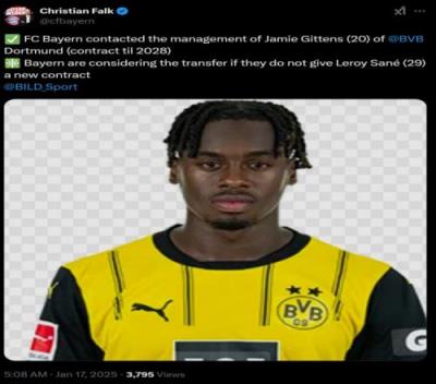 体育资讯1月17日报道宣称 据《体育图片报》主编法尔克报道,拜仁已经联系了多特20岁前锋吉滕斯的经纪公司。