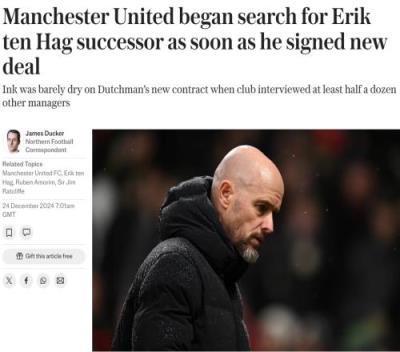 体育资讯12月24日报道宣称 据《每日电讯报》获悉,今年夏天曼联虽然与前任主帅滕哈赫续约,但续约后俱乐部就即刻开始寻找下一任正式主帅人选。