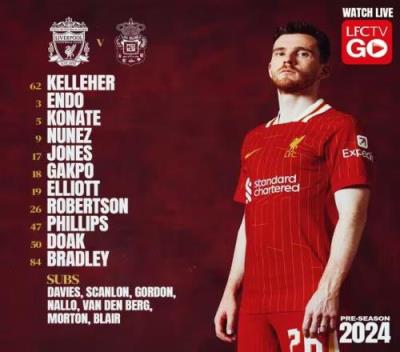 利物浦VS拉斯帕尔马斯首发:罗伯逊领衔,努涅斯、加克波出战