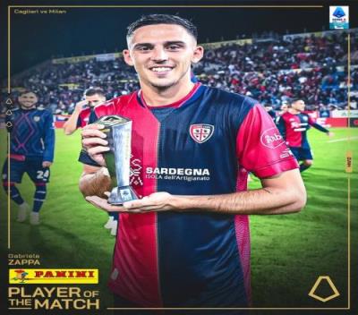 意甲官方:扎帕当选卡利亚里33AC米兰当场比赛最佳球员