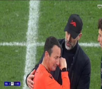 莱比锡vs维拉一位助理裁判退休,赛后泪流满面&罗泽与之拥抱安慰