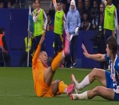 本场比赛第61分钟出现争议一幕,姆巴佩在带球时遭到西班牙人后卫卡洛斯-罗梅罗背后亮鞋钉放铲,但当值主裁只给了罗梅罗一张黄牌,VAR介入也没有改变裁判决定。