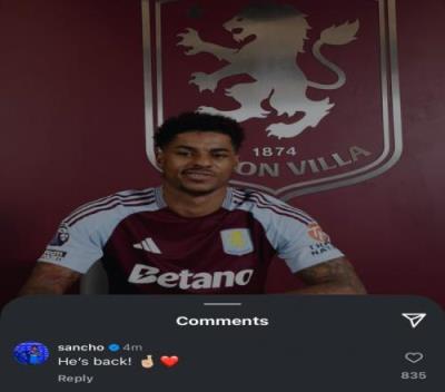 体育资讯2月3日报道宣称 今天,维拉官方宣布从曼联租借拉什福德。官宣后,拉什福德更新动态,展望了新生涯。他的多名前队友也向他送上祝福。