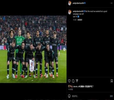 体育资讯1月30日报道宣称 今天凌晨结束的欧冠联赛阶段最后一轮比赛中,利物浦2-3不敌埃因霍温,无缘全胜出线,但仍以榜首身份晋级。赛后,罗伯逊更新了社媒。