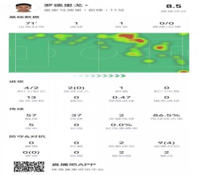 罗德里戈本场数据:传射建功+2关键传球,评分8.5