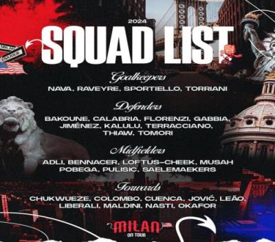 体育资讯7月25日报道宣称 米兰俱乐部更新社媒动态,公布了美国行的球员名单,莱奥、普利西奇、弗洛伦齐在列。