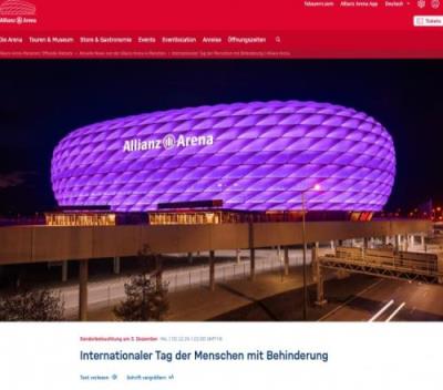 拜仁将于12月3日国际残疾人日在安联球场亮起紫色灯光,表达支持