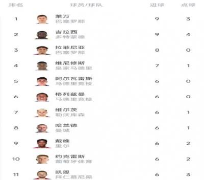体育资讯1月30日报道宣称 本赛季欧冠联赛阶段比赛战罢,莱万、吉拉西打进9球并列射手榜首位。