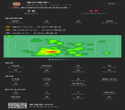 请神克罗斯!塞巴略斯数据:传球110脚成功率98.2%,3次关键传球