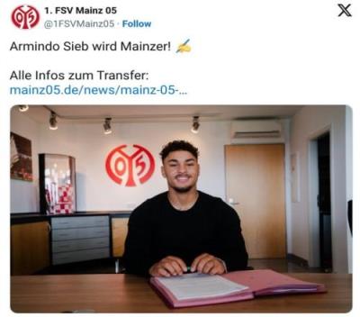 该记者透露:“美因茨能够激活租借合同中的500万欧元买断条款签下西布。他们当前对西布的表现很满意,但能否支付这笔买断费则仍然存疑。”