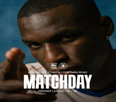 体育资讯12月30日报道宣称 本轮英超切尔西将在客场迎战伊普斯维奇,球队官方也晒出海报为这场年末收官战预热,海报中杰克逊单人出镜。