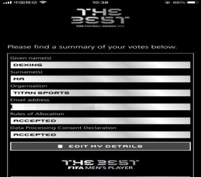 体育资讯12月18日报道宣称 2024FIFA最佳颁奖今日揭晓,维尼修斯当选最佳男足球员。中国区评审马德兴的投票与前三吻合,他发文介绍了本次投票的理由。