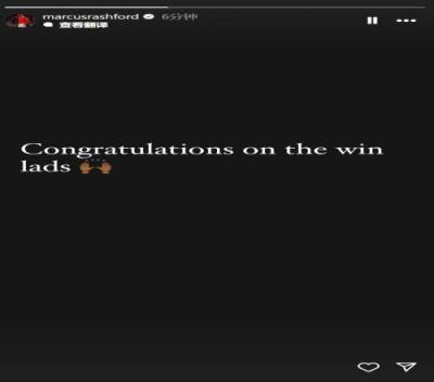 拉什福德没有进入此役名单,连续11场比赛无缘名单。赛后他在社交媒体上写道:“祝贺兄弟们取胜。”