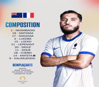 体育资讯7月30日报道宣称 法国国奥迎来同新西兰的小组赛末轮比赛,他们在今天进行了大轮换。