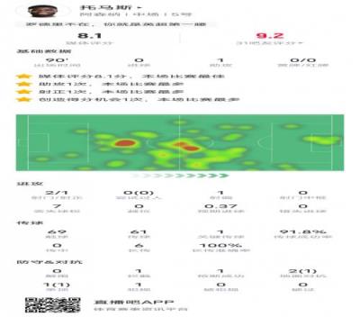 体育资讯12月5日报道宣称 英超第14轮,阿森纳主场2-0曼联。托马斯首发出战,送出1次助攻,还有1次关键传球,传球成功率达到91.8%,评分8.1全场最高。