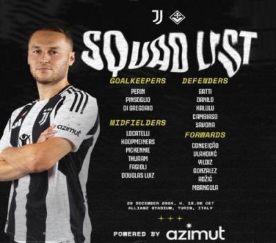 体育资讯12月29日报道宣称 北京时间明天凌晨1点,尤文将在意甲第18轮比赛中主场对阵佛罗伦萨,尤文公布了此役的球员名单,弗拉霍维奇、冈萨雷斯、库普梅纳斯在列,道格拉斯-路易斯回归,小维阿、米利克缺席。