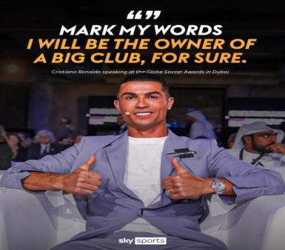 在2024环球足球奖颁奖典礼上,C罗采访中亲承自己未来“肯定会成为一家大俱乐部的老板”,此话一时间引发球迷无限遐想……