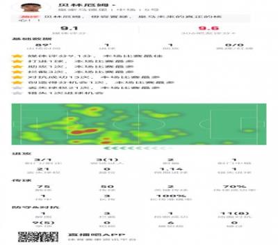 补时绝杀!贝林数据:传射建功,1失点2关键传球,全场最高9.1分