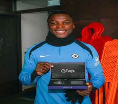 完成在英超的100场里程碑,切尔西中场凯塞多获得官方纪念奖牌