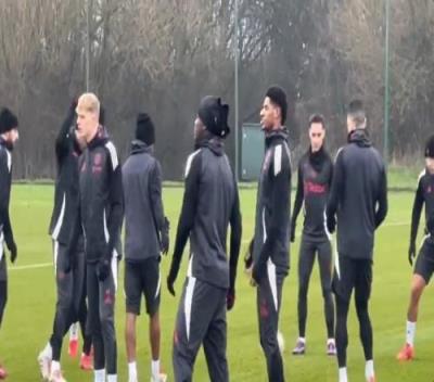 体育资讯1月22日报道宣称 曼联今日进行了备战欧联杯赛前训练,从训练现场视频可以看出,安东尼今日也参与了球队的合练。