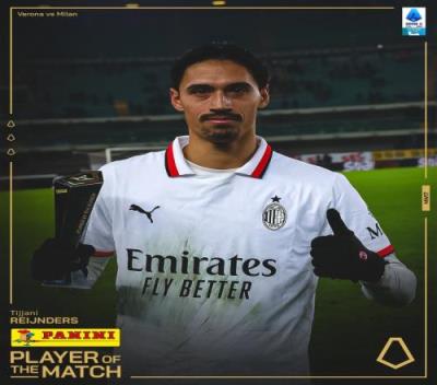 意甲官方社媒晒出赖因德斯的海报,宣布他当选本场比赛最佳球员。