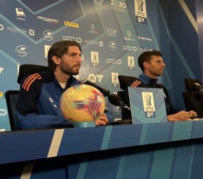 体育资讯1月2日报道宣称  北京时间1月4日凌晨3点,意超杯半决赛,尤文将对阵米兰。比赛开始前,尤文中场洛卡特利跟随主帅莫塔出席了新闻发布会。