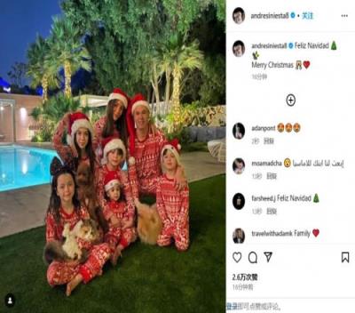 伊涅斯塔上传了与家人在泳池边的合影,并用西英双语配文写道:“圣诞快乐”。