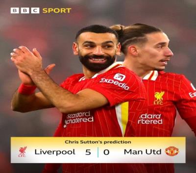 体育资讯01月03日报道宣称 BBC足球评论员克里斯-萨顿预测了本轮英超即将迎来的双红会大战,萨顿大胆预测利物浦将5-0血洗曼联。