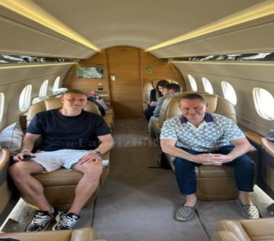 记者罗马诺晒出一张照片,多夫比克和他的经纪人柳多夫斯基以及罗马管理层一同乘机飞往罗马。多夫比克只想加盟罗马,他将在一小时后抵达俱乐部进行体检。