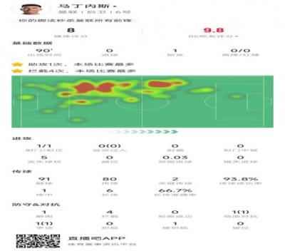 利桑德罗本场数据:送出绝杀助攻,4次拦截全场最多&获评8分