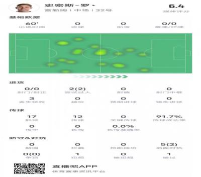 体育资讯12月8日报道宣称 英超第15轮,富勒姆主场迎战阿森纳。史密斯-罗代表富勒姆首发出战,有2次过人成功,传球成功率91.7%,评分6.4。