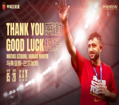 经与球员本人友好协商并达成一致,阿根廷球员马蒂亚斯-巴尔加斯正式离队。俱乐部充分尊重、支持球员对其职业生涯的全新规划,同时对球员表示衷心的感谢与祝福。