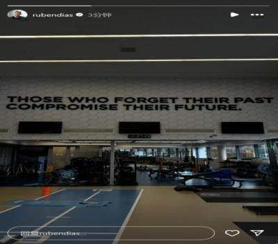 曼城近期战绩不佳,鲁本-迪亚斯在社交媒体上晒出健身房的照片,健身房的墙上写有一句箴言:“前事不忘,后事之师。”