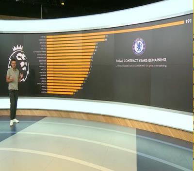 屏幕够长切尔西球员合同剩余年数总和191年,领先第2热刺94年