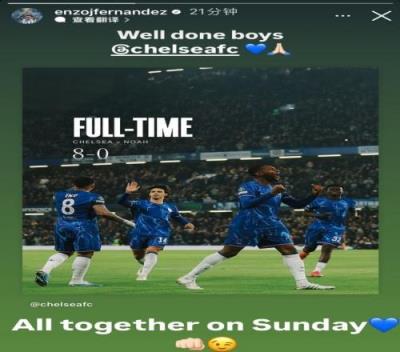 恩佐转发了比分海报,并写道:干得漂亮,小伙子们!现在大家要团结起来准备周日的比赛。