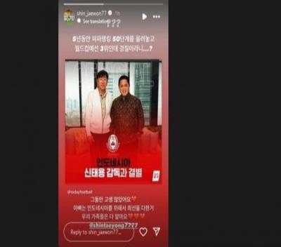 随后申载沅在印尼足协官方账号下留言:“???他把印度尼西亚推到了这个阶段,这就是你们对待他的方式。干得漂亮,你们会后悔做出这个决定的。”