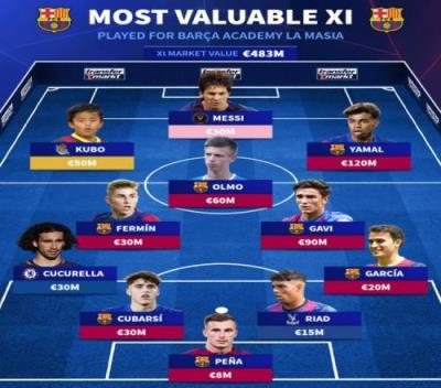 德转列巴萨青训最贵阵:亚马尔、加维领衔,梅西、久保建英在列