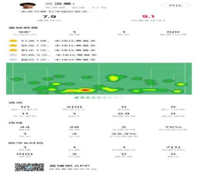 关键传球2次,传中1次,长传3次,长传准确率33.3%