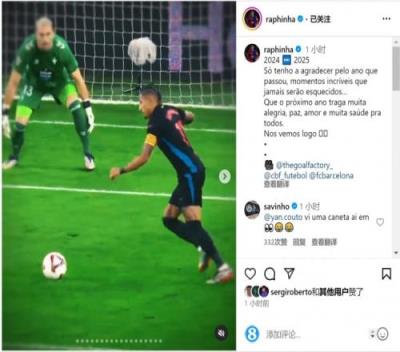 拉菲尼亚晒出自己的精彩表现集锦,并配文:“2024→2025。过去的一年我唯有感谢,那些难以置信的时刻永远不会被忘记。”