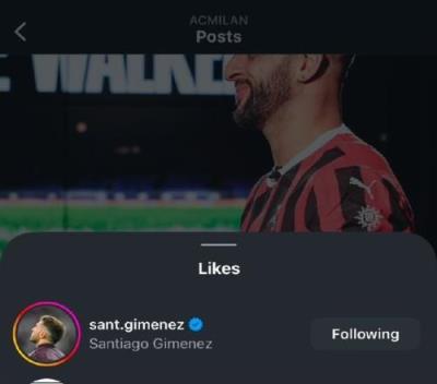 米兰俱乐部官方更新社媒动态,宣布以租借的方式签下曼城34岁边卫沃克,希门尼斯为这条动态点赞。