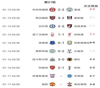天空预测伊普斯维奇爆冷2比1战胜布莱顿,曼联主场3比0完胜南安普顿。