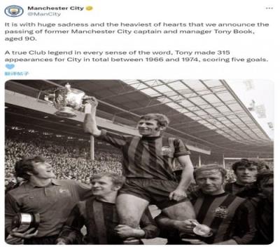 体育资讯1月14日报道宣称 前曼城队长、主帅托尼-布克去世,享年90岁,曼城官方发文致哀。